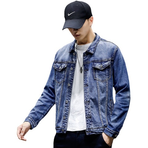 แจ็กเก็ตเสื้อยีนส์สีน้ำเงินเข้มสำหรับผู้ชายเสื้อลำลองออกแบบใหม่
