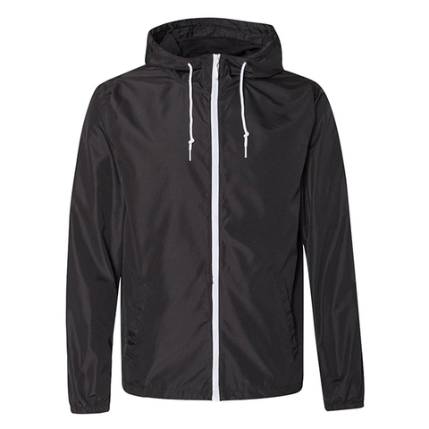 แจ็คเก็ตกันลมมีซิปแจ็คเก็ตกันลมผ้าโพลีเอสเตอร์น้ำหนักเบามีสไตล์เสื้อกันลมกันน้ำมีฮู้ด