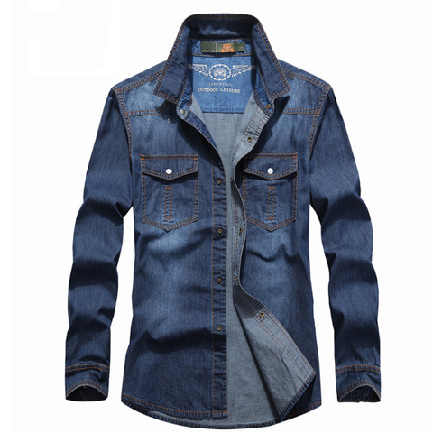 เสื้อโค้ทยีนส์สำหรับผู้ชายเสื้อแจ็กเก็ตทำงานแขนยาวกระดุมลำลอง