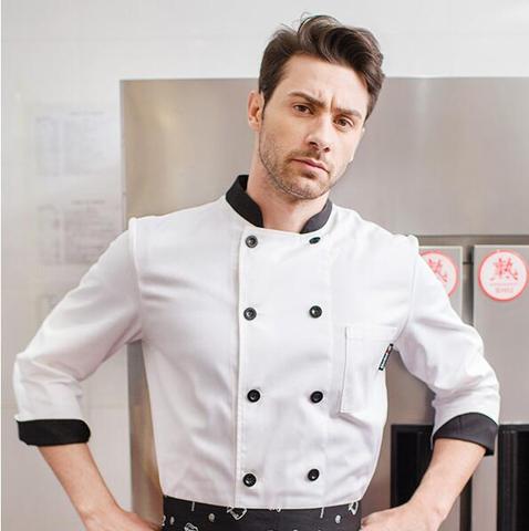 पुरुषों की लंबी आस्तीन शेफ वर्दी जैकेट सफेद क्लासिक ठोस शेफ का कोट होटल और रेस्तरां के लिए